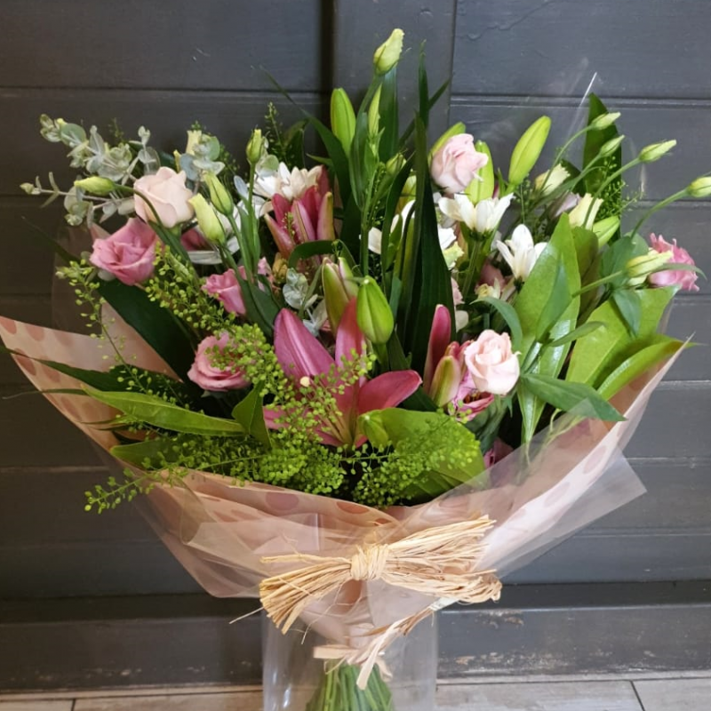 זר קלאסיה רומנטית מגוונים רכים ורודים ולבנים , בשילוב מליליות גבוהות ורדים ליזיאנטוס ופרחים ורודים ולבנים, עם ירק טבעי שמוסיף חיות וקסם. מושלם לאהבה, תודה, כמתה לאדם יקר או כפינוק לעצמך – כי כל יום הוא סיבה לשמוח.